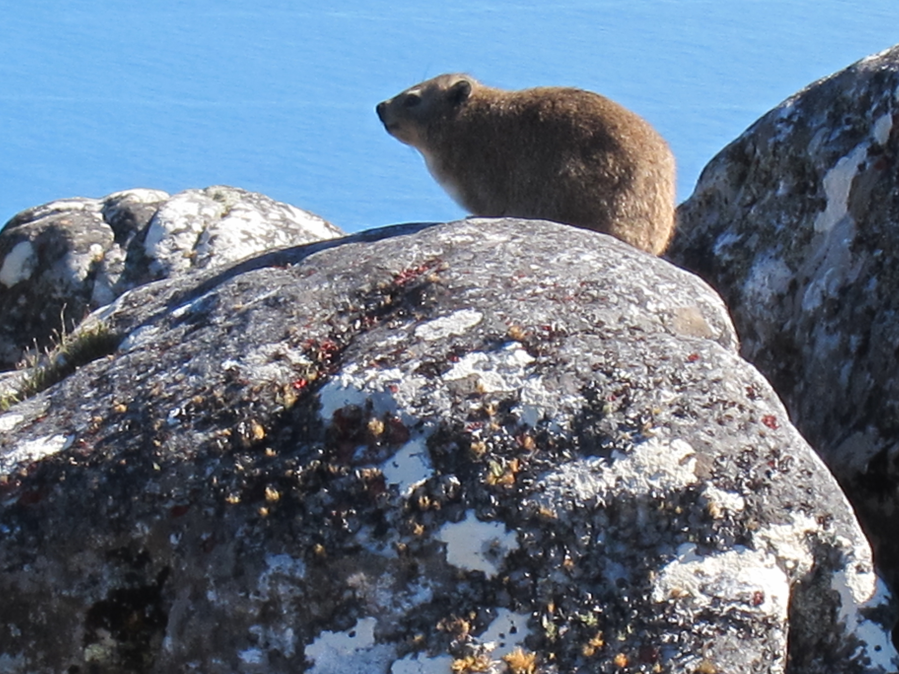 Apart from the stunning views, there are flowers, birds and lizards and you will almost certainly spot some dassies. These rodents are unbelievably the closest relative of the much larger elephant. Sweetpea was first to spot one.